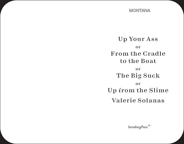 “My only consolation’s that I’m me—vivacious, dynamic, single, and a queer,” quips Bongi Perez, the intrepid antiheroine of Valerie Solanas’s Up Your Ass. Written between 1962 and 1965, the play features a wisecracking masc lesbian panhandler and sex worker who sounds a lot like the writer herself. Notorious for shooting Andy Warhol and his associate Mario Amaya in 1968, Solanas’s best-known text is her SCUM Manifesto (1967), outlining a program of male elimination. But it was Up Your Ass, a lesser-known dramatic work, that lay at the heart of her conflict with Warhol. Until now, the bawdy and rollicking play has never been published by a major press. This month, it appears via Sternberg’s sub-imprint Montana.